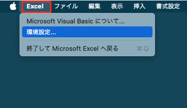 - Macでは「Excel」> 「環境設定」>「エディターの設定」で設定可